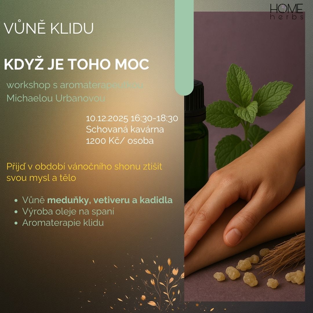 Přijďte si v období vánočního shonu ztišit tělo a mysl. Vyrobíme si i olej pro lepší spaní.